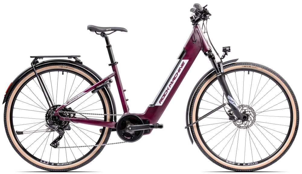 Nový elegantní Mono rám s pohodlným nízkým nástupem pro komfortní jízdu po cyklostezkách a dojíždění ve městě se středovým pohonem Sport Drive, novým barevným displejem a plně integrovanou baterií, kterou dobijete za 4 hodiny. Výkonný systém středového motoru se silou 90 Nm a baterií s kapacitou 504 Wh zajišťují na jedno dobití dojezd až 100 km*. Součástí tohoto modelu je plná turistická a městská výbava: nosič, lehké blatníky, světla napájená baterií kola, stojánek nebo praktický zámek. O pohodlí se stará uzamykatelná pružinová vidlice a pohodlné doplňky značek WTB a ONE1.