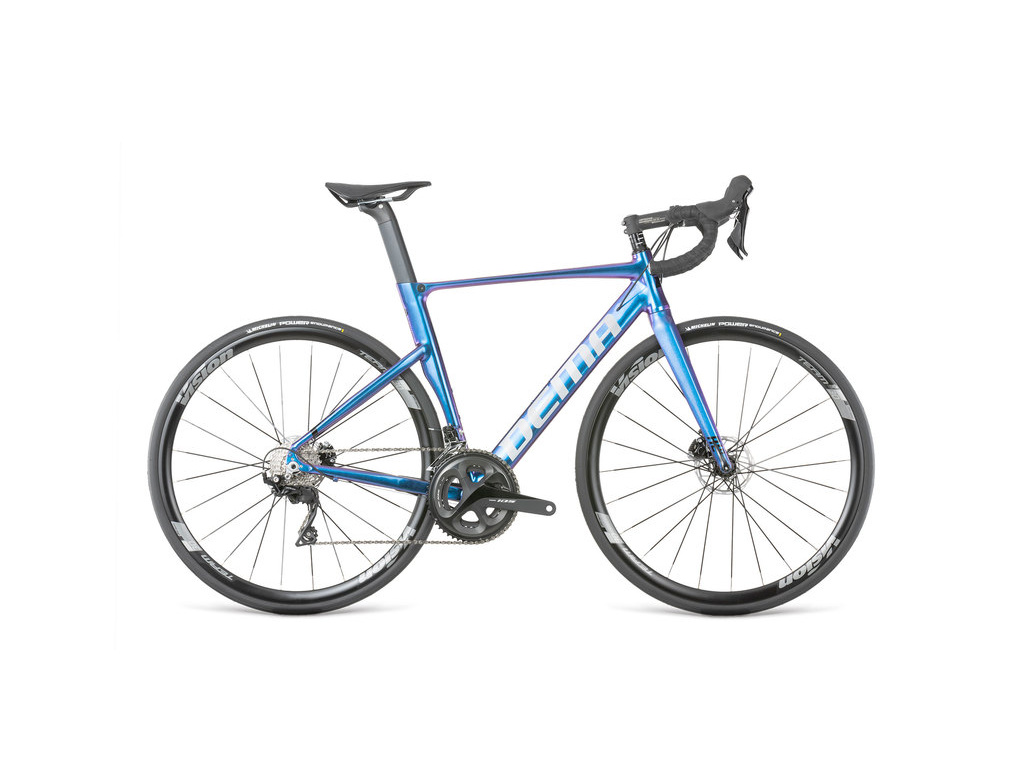 Dema Leony 8 je skvěle vybavené a přitom cenově dostupné silniční kolo. Hliníkový rám s karbonovou vidlicí v designu chameleon je osazen sadou Shimano 105 s kotoučovými brzami a zapletenými koly Vision se středně vysokým profilem ráfku.