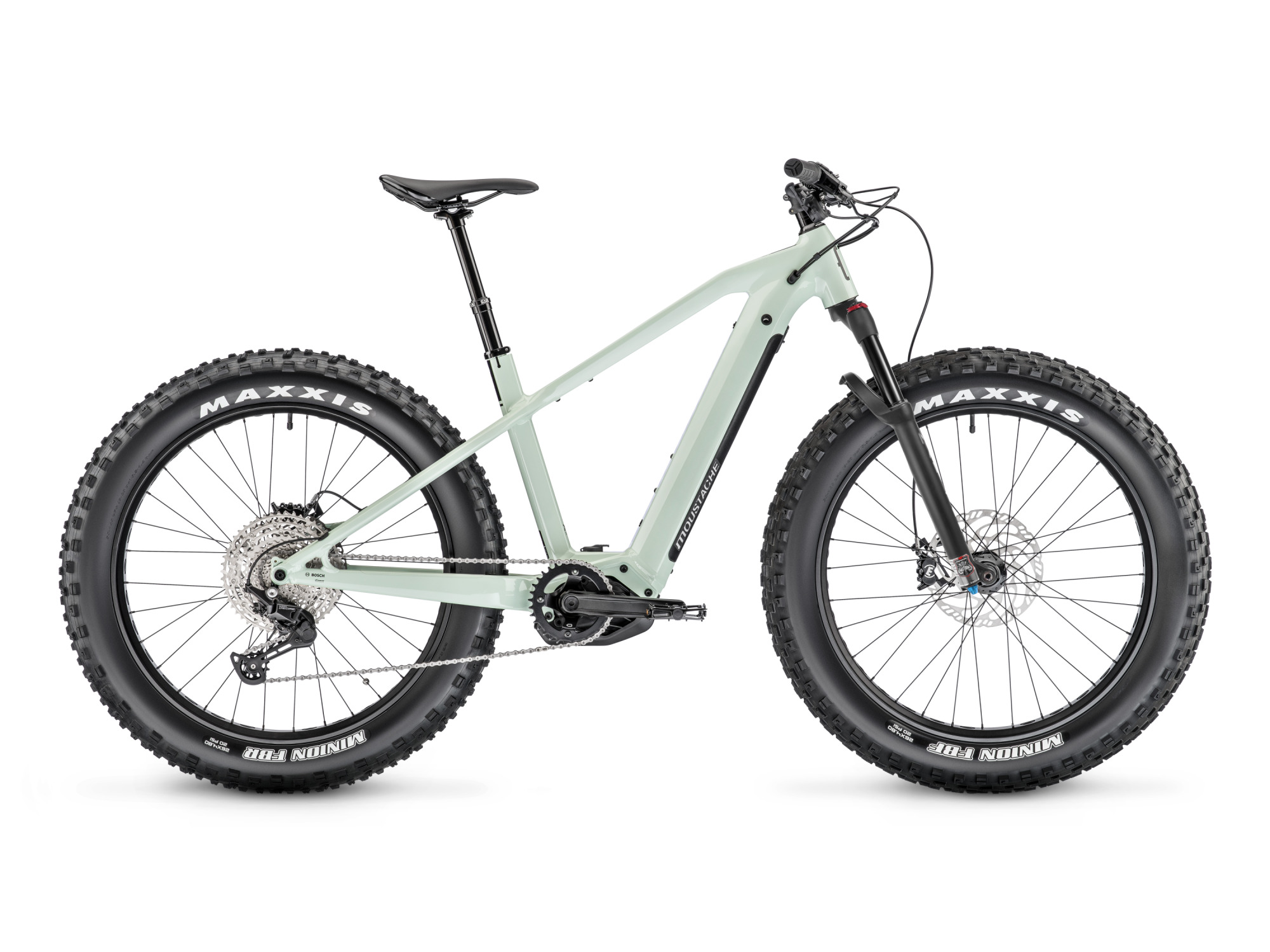 MOUSTACHE Samedi 26 FAT 4 je univerzální e-fatbike, navržený pro jízdu na různých terénech, včetně sněhu a písku. Je vybaven motorem Bosch Performance Line CX s točivým momentem 85 Nm a baterií 625 Wh PowerTube. Model disponuje 11rychlostním řazením Shimano Deore a hydraulickými kotoučovými brzdami Shimano s 203mm kotouči pro spolehlivé brzdění za všech podmínek. Pláště Maxxis Minion 26×4.8″ jsou ideální pro náročné terény a přední odpružená vidlice Manitou Mastodon Comp Extended se 100mm zdvihem vám poskytne vyšší komfort při jízdě. Sedlovka KS-900i zvyšuje ovladatelnost na nerovném povrchu. Integrovaný Bosch Smart System umožňuje propojení s aplikací eBike Flow, která nabízí GPS sledování, plánování tras a různé možnosti přizpůsobení.