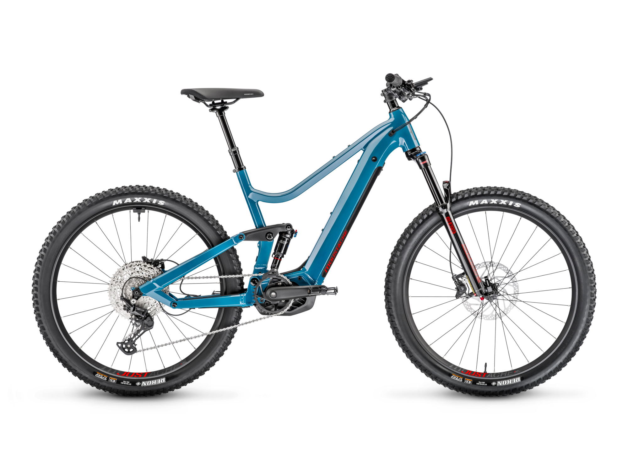 Model MOUSTACHE Samedi WIDE 3 je celoodpružené MTB elektrokolo s hliníkovým rámem, odpružením 130 mm vpředu (Suntour XCR 34) a 120 mm vzadu (Moustache Magic Grip Control). Pohání ho motor Bosch Performance Line CX s točivým momentem až 85 Nm a baterie Bosch PowerTube 625 Wh, která poskytuje dlouhý dojezd. Model je vybaven hydraulickými kotoučovými brzdami Shimano a 11rychlostním řazením Shimano Deore. Díky širokým 27,5″ plášťům Maxxis Rekon je ideální pro různé terénní podmínky. Displej Bosch Intuvia 100 s LED dálkovým ovládáním nabízí snadno čitelné informace a umožňuje připojení k aplikaci Bosch eBike Flow.