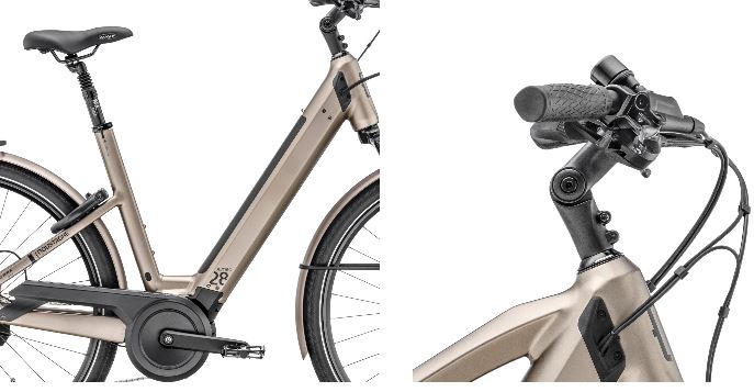 MOUSTACHE Samedi 28.2 je elektrokolo navržené pro každodenní jízdu ve městě i pro výlety do přírody. Je vybaveno tuhým rámem z hliníkové slitiny 6061 T4-T6 s hydroformovanými trubkami o proměnné tloušťce a integrovanou baterií Bosch PowerTube, což zajišťuje elegantní vzhled a snadné nastupování.