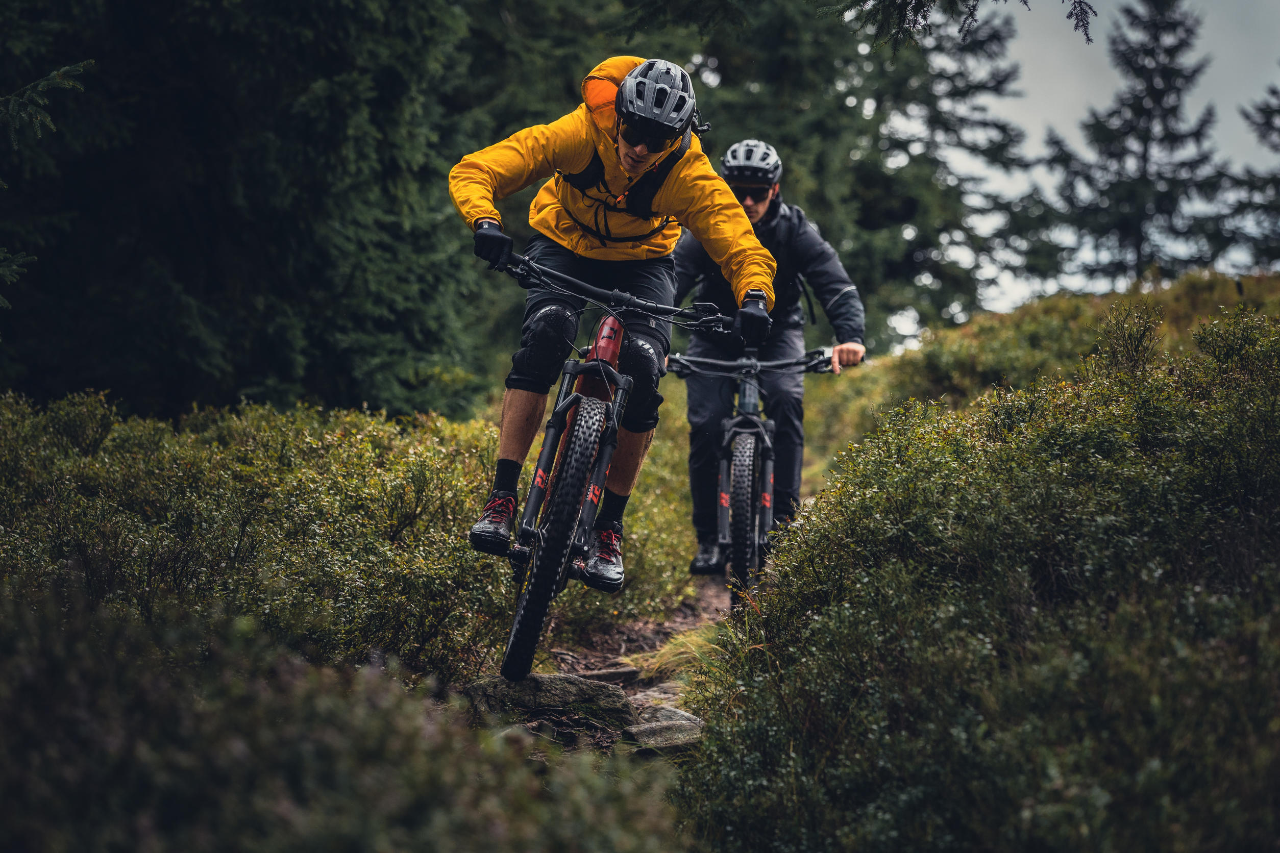 Ne každý polet je s čistým dopadem. Odolné enduro ráfky Rodi Tryp 30 však zvládnou hrubší zacházení a sem tam nějakou hranu na doskoku odpustí. Obuté jsou do kvalitních plášťů Continental Trail King.