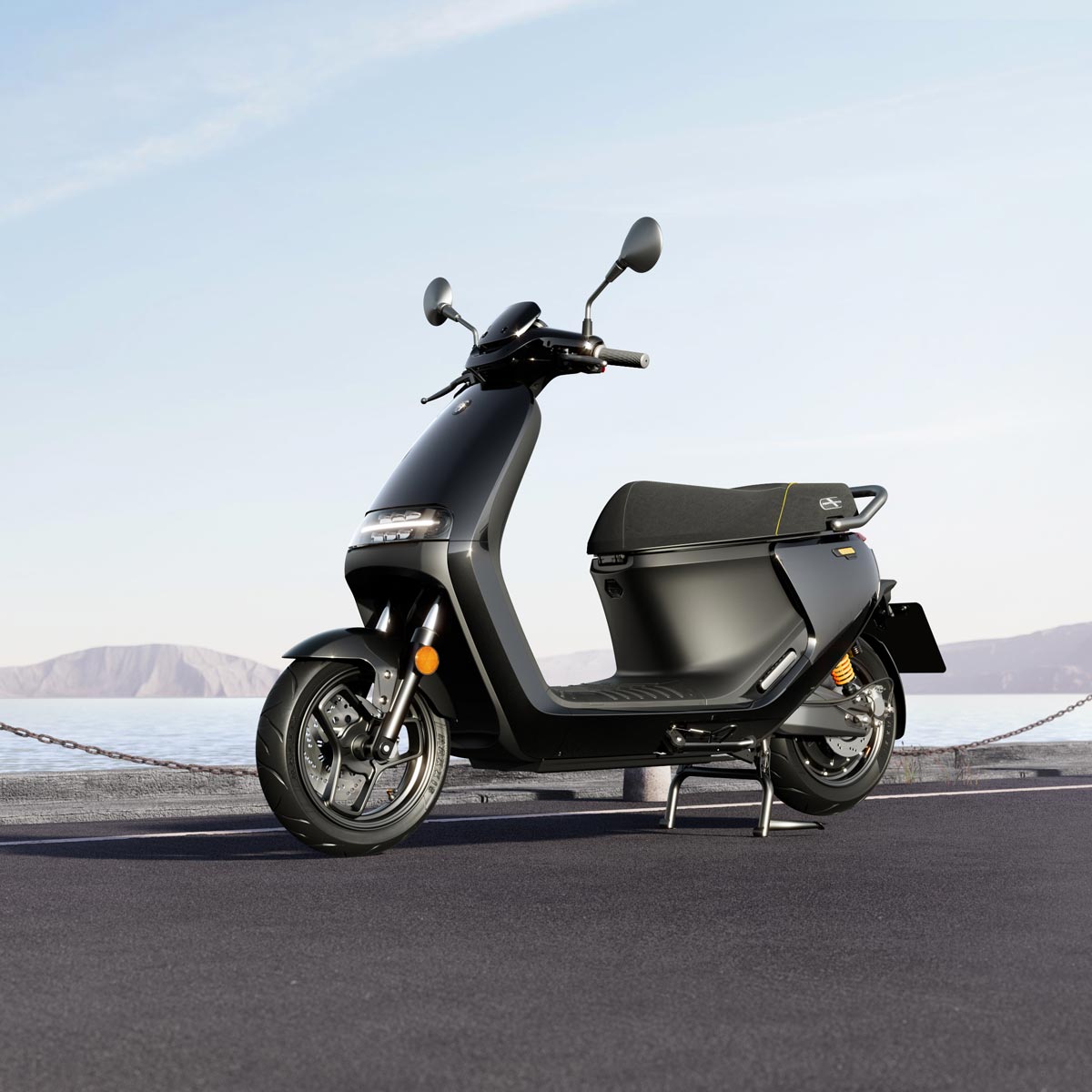 Permanentní mobilní konektivita a příjmač GPS zajišťují neustálý monitoring stavu a polohy skútru. Díky pokročilé ochraně proti krádeži máte klidné spaní. Jakmile dojde k podezřelému chování, systém okamžitě hlasí jeho polohu v aplikaci a aktivuje alarm. Majitel má též možnost v případě zcizení dálkově vyřadit z provozu odcizený stroj a jeho baterii. Aplikace umí dálkově odemknout skútr například pro kamarády a ovládat klakson i světla, například na velkém podzemním parkovišti.