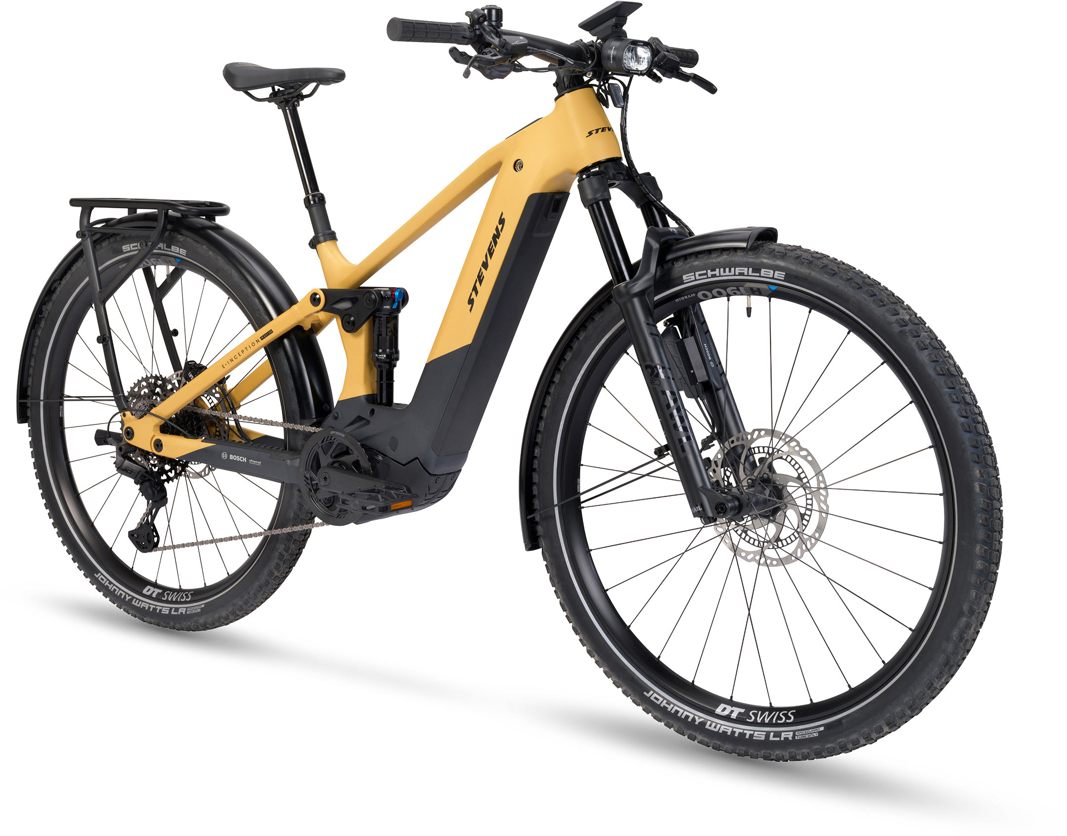 STEVENS E-Inception TR 8.8.1 FEQ představuje vrcholnou volbu mezi E-Crossover modely díky robustní konstrukci a pokročilé technologii inspirované oceněnou řadou E-Inception E-MTB. Rám z hliníku 6061 TB je doplněn odpružením Fox s 120mm zdvihem, které hladce zvládá i náročnější terén.