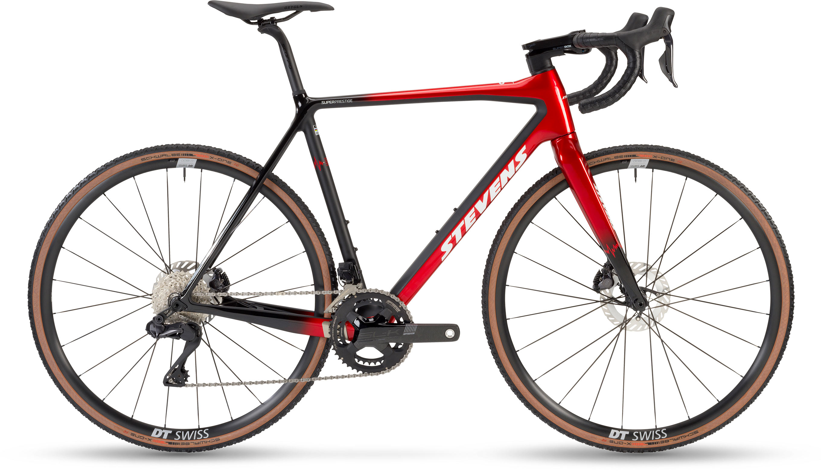 STEVENS Super Prestige Di2 je výsledek neustálého vývoje pro dosažení toho nejlepšího pro náročné cyklokrosové podmínky. S ultralehkým karbonovým rámem navrženým pro optimální tuhost a geometrii splňuje ty nejvyšší standardy, které jsou ověřené závody na světové úrovni. Integrovaná sedlová objímka a skryté vedení kabelů, dosažené díky systému představce Deda Superbox, zajišťují čistý vzhled a snadnou manipulaci v každé situaci.
