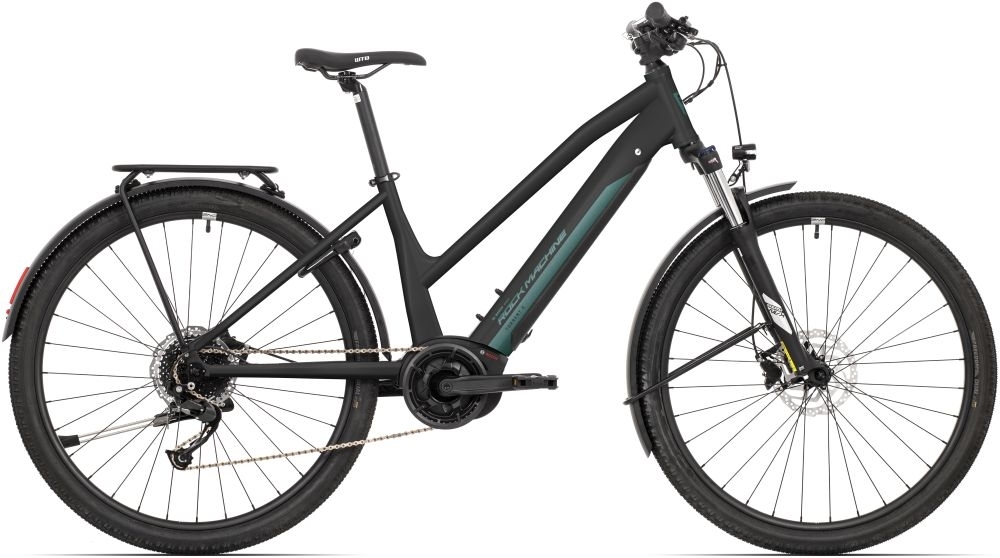 Rock Machine Torrent ve verzi Easy Entry & Exit. Řešení pro pohodlné nastupování a vystupování z kola. Díky této rámové platformě už nebudeš muset přemýšlet, jak nasednout na kolo s dvojicí brašen na nosiči s nosností 27 Kg. Tento všestranný pomocník dokáže vykouzlit úsměv na tváři nejen během víkendových vyjížděk, ale stejně tak poslouží jako ideální dopravní prostředek. Inovovaný hliníkový rám v decentním designu je navržen s maximálním ohledem na výdrž a kontrolu nad kolem. Pohon zajišťuje osvědčený pohon Bosch Performance Line CX se silou 85 Nm. V kombinaci s baterií o kapacitě 625 Wh ujede více než 150 km. Pro jízdy za snížené viditelnosti je připraveno výkonné světlo Herrmans PRO se svítivostí 230 lumen.